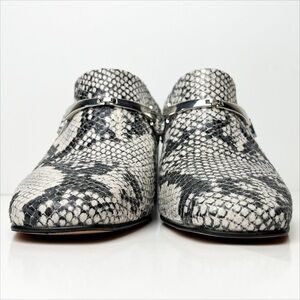 ASOS Reptile Snakeskin Mules 40 9.5 black white neutral square toe shoes heels slip-on block heel horse bit equestrian mob wife