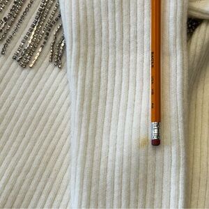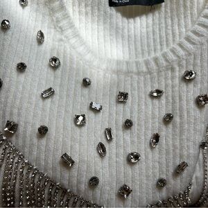Stylish rhinestone embellished cream sweater