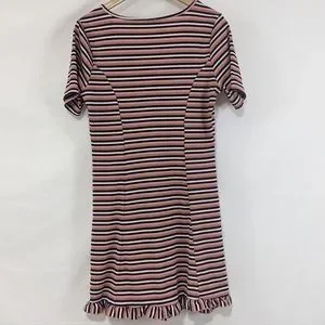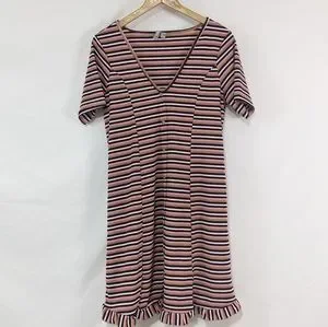 ASOS Tonal Stripe Mini Dress Button Ruffled Hem