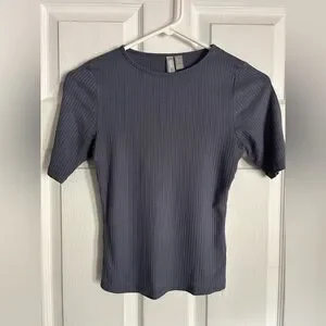 Chic ribbed top with short sleeves. Ideal for everyday style.