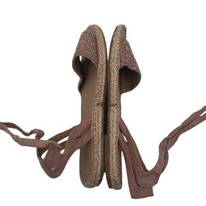 ASOS Rose Gold Embellished Ankle Lace Up Espadrille Sandals Size 5.5 Women’s
