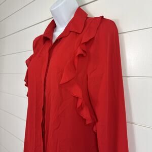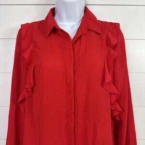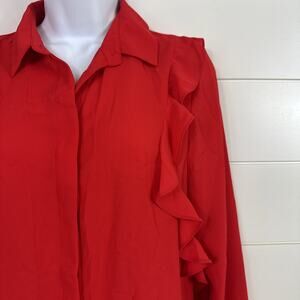 ASOS Ruffle Button Front Long Sleeve Blouse Shirt Red sz 6