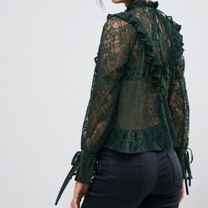 ASOS Ruffle Lace Sheer Blouse Sheer lace High neck Ruffle detail Tie cuffs and back NWOT Size 6