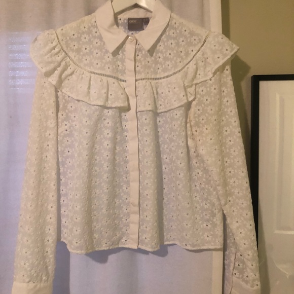 ASOS Button Up Ruffle Top Blouse, like new. Size US 8 (fits like an XS/S)