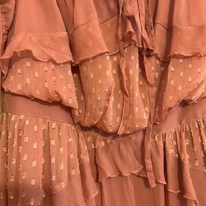 Chic ASOS maxi dress with ruffle details. Flowy design in a warm rust hue. Ideal for versatile styling.