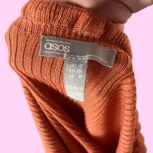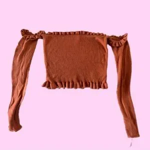 ASOS ribbed off-shoulder crop top in rust orange. Long sleeves with stretchy knit fabric. Subtle ruffle trim along edges. Easy to layer for casual looks. Never worn it was too big :)