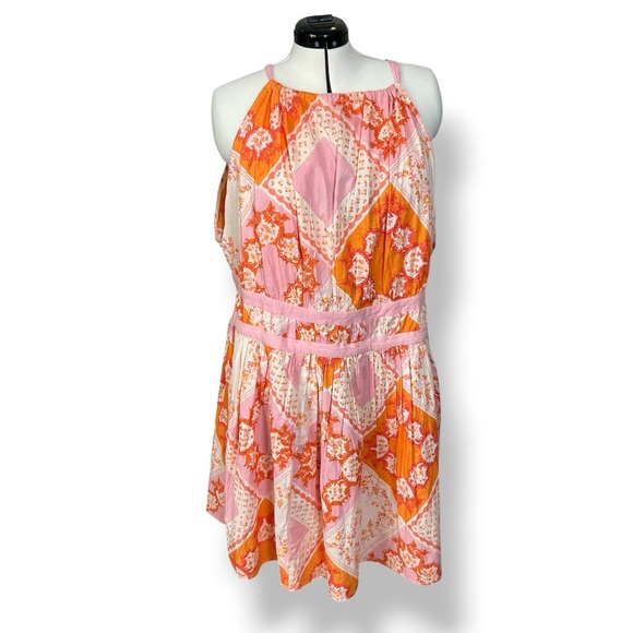 ASOS, new with tags, cotton scarf dress with a rich pairing of orange and pink. Has open back with ties.