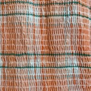 THIS DRESS IS VERY CUTE FOR THE SUMMER AND JUST HANGING AROUND. IT HAS PRETTY COLORS AND IS VERY NON-ITCHY. IN NEW CONDITION