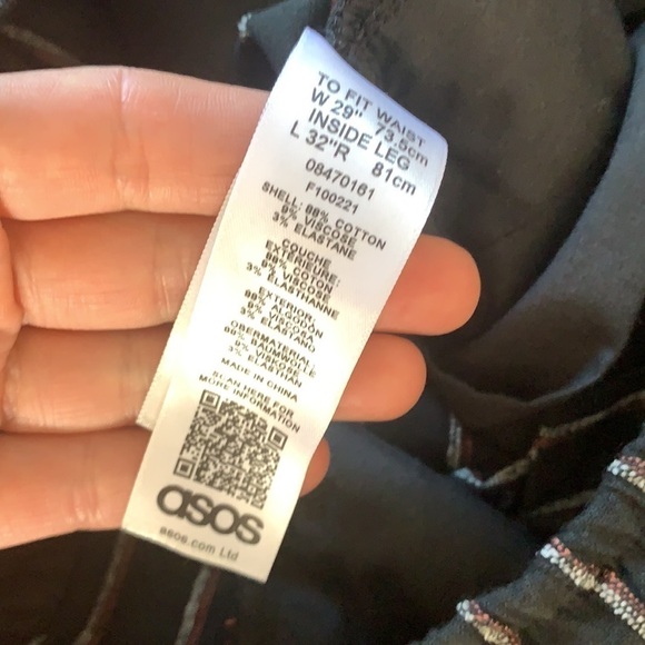ASOS STRIPED PANT black brown drawstring pockets. Size 29.