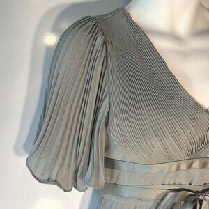 Grecian pleated formal maxi gown, flattering fit