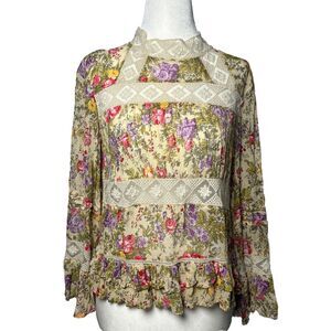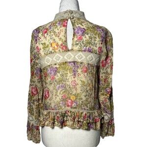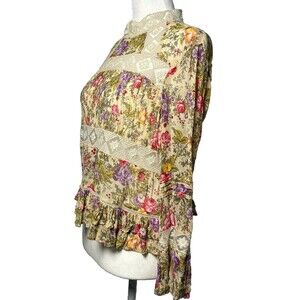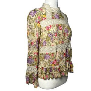 ASOS SZ 4 Floral Lace Trim Blouse dainty romantic Cottagecore Ruffle Sleeve Top