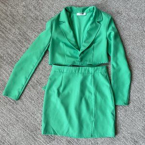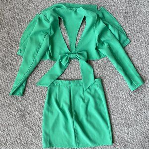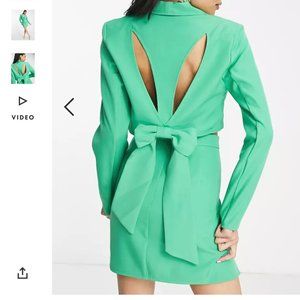 ASOS Saint Genies cropped blazer with bow back and skirt set in green small