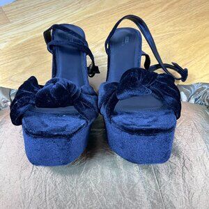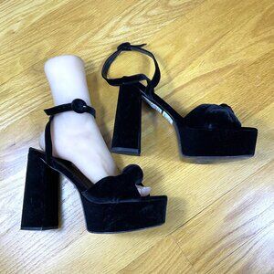 ASOS Sandal Platform Velvet Black with Cross Ankle Strap High Heel (9)