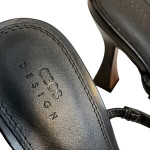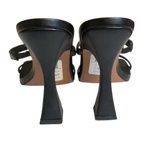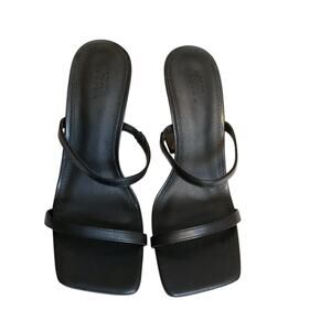 ASOS Sandals SZ 7 Black Leather Slide Square Toe High Square Heels