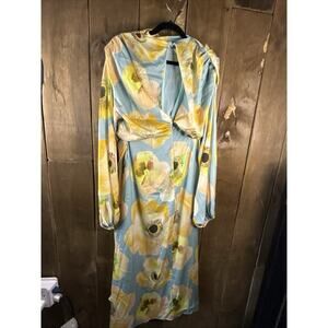 ASOS Satin Volume Blouson Sleeve Floral Dress, Size 6