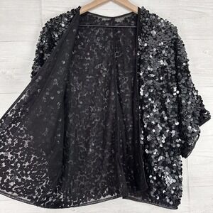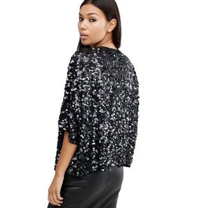 ASOS Sequin Top Jacket Women Size 2 Disc Embellished Black Short Sleeve Party