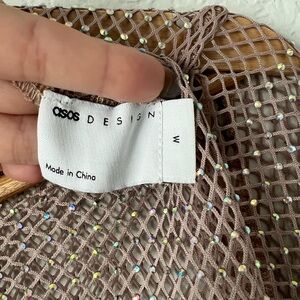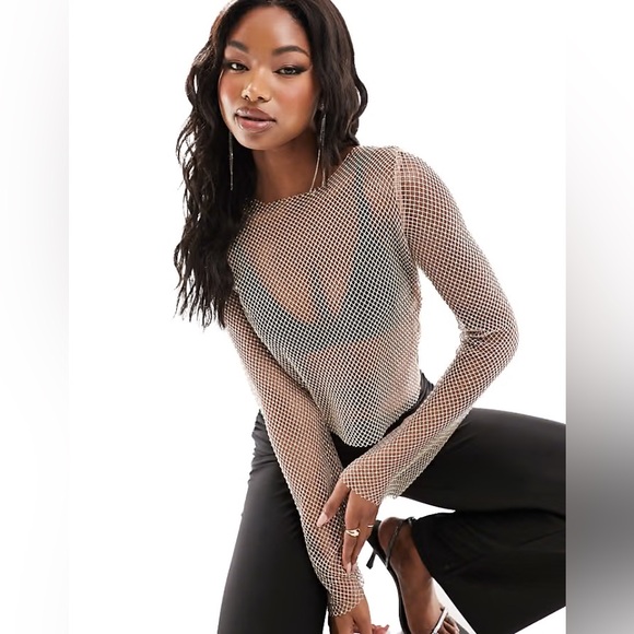 ASOS Sheer Rhinestone Mesh Long Sleeve Top