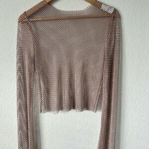 Stylish sheer mesh top with long sleeves. Perfect for layering. Looser fit so could potentially fit M/L. In great condition, only worn once.