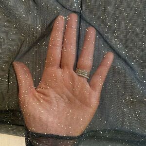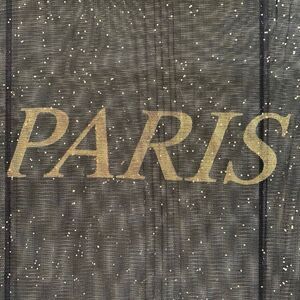 Black see through very sparkly oversized long sleeve top in excellent condition that says Paris in gold font