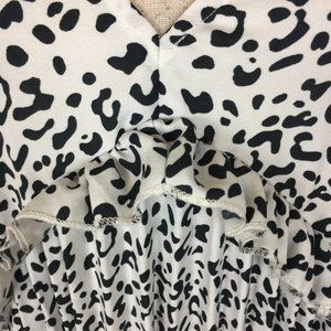 ASOS Shift Dress Sz 14 Womans White Black Animal Print V-Neck Ruffle Long Sleeve