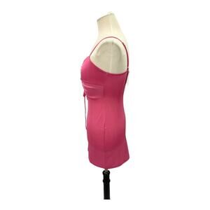 ASOS Shiny Pink Lace Up Cut Out Mini Dress Size 6P; From Nordstrom; lace up front, polyester elastane blend fabric; slightly shiny