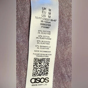ASOS Shirt, size Medium, new without tags. This is a long sleeved cotton blend button down shirt. The chest measurement is 38” with pleats on the back.