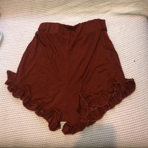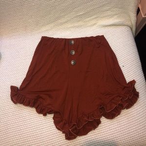 Asos burnt orange shorts with buttons and ruffles at the bottom. comfy and stretchy material. Never worn & extra button included. Size US 0