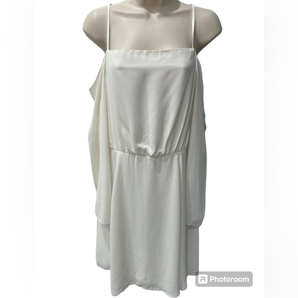 Stunning goddess white cream over the shoulders dress with open back held by one button.