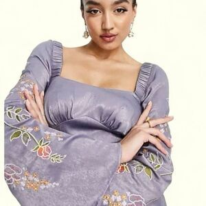 ASOS Silky Purplish Floral Embriodered Dress Large 12