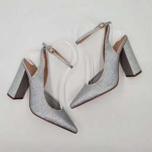 • ASOS silver glitter, sparkling, glistening, diamond-like block heels