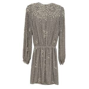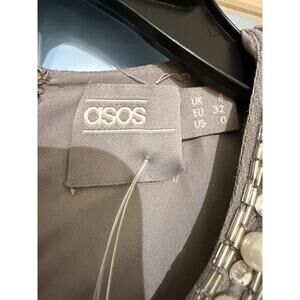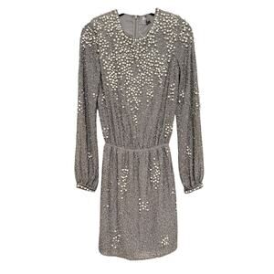 ASOS Silver Pearl Embellished Beaded Cocktail Mini Dress Long Sleeve Party 0
