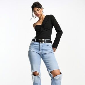 ASOS Simmi London Black Tailored Off Shoulder Black Bodysuit Womens 4 New
