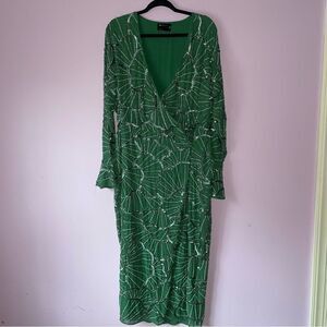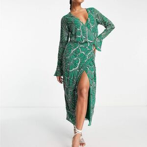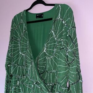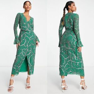 ASOS Size 12 Green Maxi Dress Wrap Front Beaded Embroidery