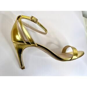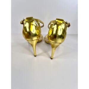 ASOS Size 8 Gold Shiny 3 Inch Ankle Strap Heels Open Toe