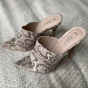 Snake Skin Open Toe Mules in size US 7, UK5 purchased on ASOS’ website. Wore them once for an event and that’s about it. The miles are in a great condition. Please see the photos.