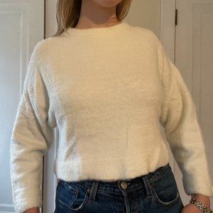 ASOS Soft White Sweater | White Fuzzy Cropped Sweater Size 8