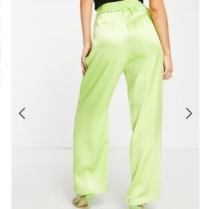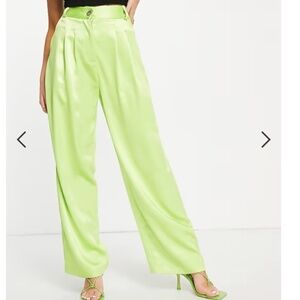 ASOS Special Event Work Wear Satin Lime Green Chic Pleated Wide Leg Pant NWT