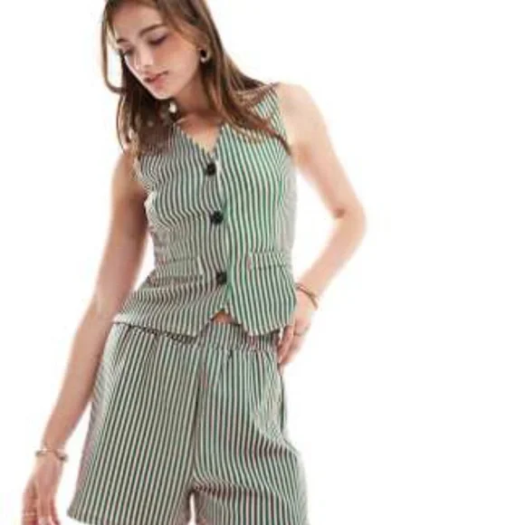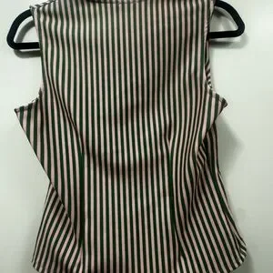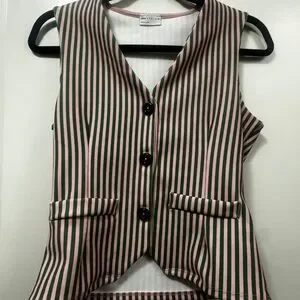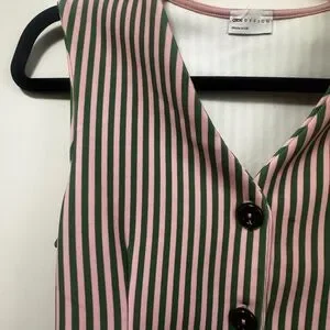 Stylish button-up shirt set with green and pink stripes. Sleeveless design perfect for spring. Ideal for casual outings to look more out together. Very comfortable style. Size small on the snug side, like new. Only worn once.