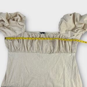 ASOS Square Neck Cotton Hemp Puff Sleeve Midi Dress Beige Size US 22 Plus Size