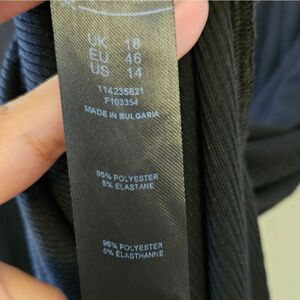 Black ribbed bodycon dress with side slit. Very stretchy cotton feeling material. Square neckline and long sleeves.