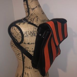 Striped Asos Backpack Orange and Black. Condition is Pre-owned. Shipped with USPS Priority Mail.