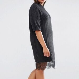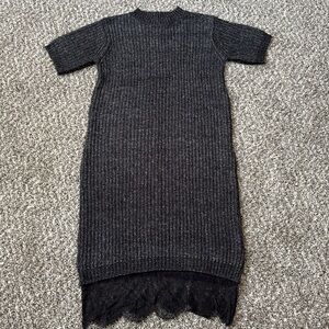 ASOS black, gray and white sweater dress with a lace trim, size 2. RK15