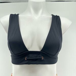 This stylish ASOS swim set features a mix-and-match design for a fun and versatile beach look. The black bralette top offers a sleek, minimalist style with comfortable support, perfect for lounging or swimming. Paired with high-waisted bottoms featuring a classic stripe pattern, this set provides a flattering silhouette and vintage-inspired charm. Ideal for pool days or seaside adventures, this size 8 swim combo blends comfort and style effortlessly.