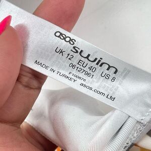 ASOS swim, mix and match, high waist bikini bottom, striped bikini bottom, black bralette bikini top, swim set, size 8, women’s swimwear, two-piece swimsuit, beachwear, summer fashion, high-waisted swim, bikini combo, poolside style, trendy swimwear.