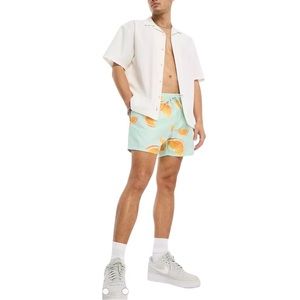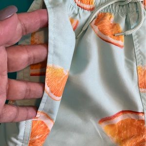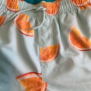 ASOS Meet You By The Pool Swim Trunks. Fun Orange Slice Patterned Fabric. Elasticized Drawstring Waist. Two Front Slit Pockets. Inner Mesh Lining. In Very Good Condition.