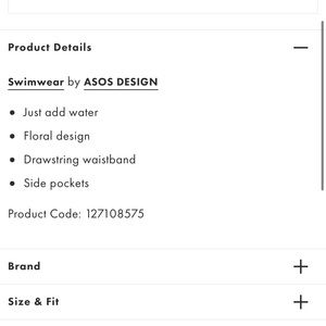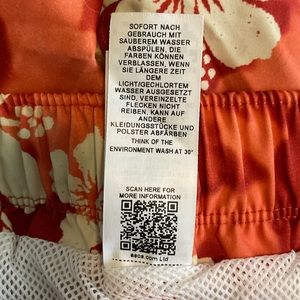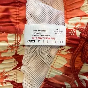 ASOS Just Add Water Swim Trunks. Tropical Floral Patterned Fabric. Elasticized Waistband with Drawstring. Two Front Slit Pockets. Mesh Inner Liner. In Very Good Condition.