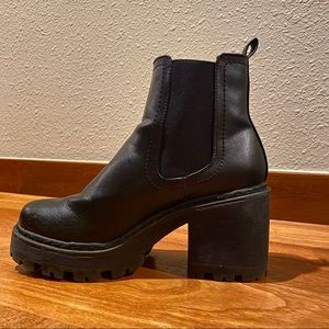 These shoes are so comfortable and sturdy. Classic Chelsea Boot style with a trendy thick heel and platform! Super cute with shorts/skirt but I’ve loved wearing these with jeans!