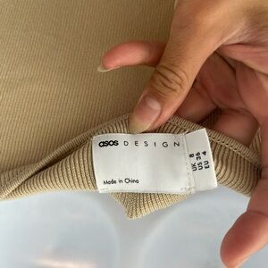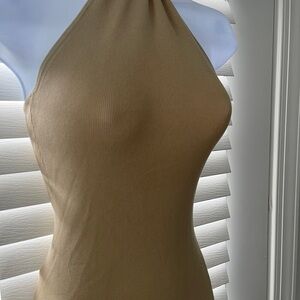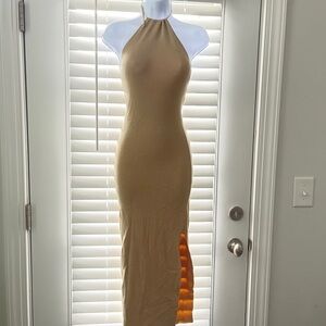 ASOS Tan Backless Halter Mini Side Slit Dress