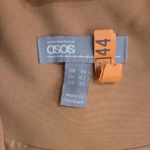 Stylish ASOS blazer in a classic tan color. Features a single-button closure and two front pockets. Perfect for professional or casual wear.