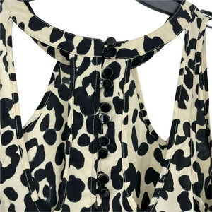 ASOS Tank Top Womens 6 Black Cream Leopard Print Sleeveless Cut Out Flare Halter